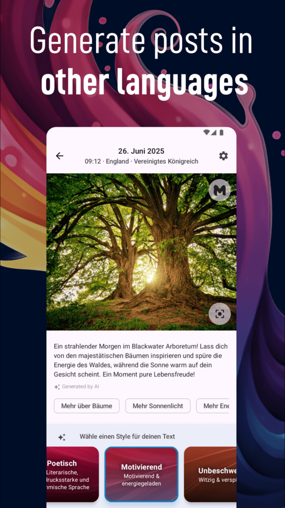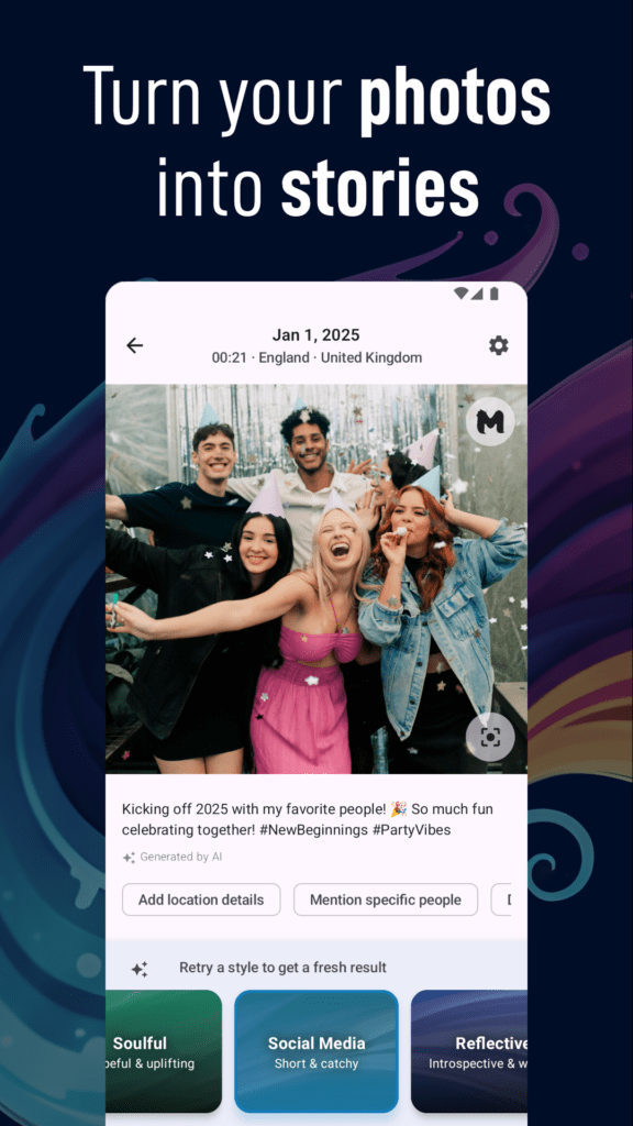 Moodya offers a simple, playful way to automatically create photo captions by just selecting a mood, writing style or tone.
